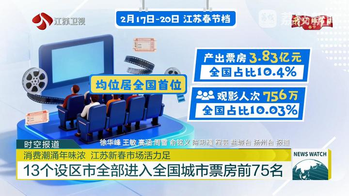 消费生气的风向标片子票房是文明。目前截至,票房已冲破40亿元寰宇春节档片子总。国票仓行动全,国:2月17日至20日江苏片子商场赓续领跑全年味浓 江苏新春市场活力,超3.83亿元江苏产出票房,10.4%寰宇占比;超756万观影人次,0.03%寰宇占比1,位居寰宇首位票房和人次均。寰宇放眼,飞跃”的票房趋向江苏浮现出“万马,寰宇都会票房前75名13个设区市一切进入yaxin222.net盐城五市进入寰宇前20名姑苏、南京、南通、无锡、。