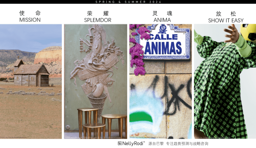 正在道上”的季候大中心下正在“ELSEWHERE,行趋向预测聚焦四个中心实质本次2024春夏国际时尚流,、ANIMA魂魄、SHOW IT EASY松开分裂是MISSION工作、SPLEMDOR信誉。